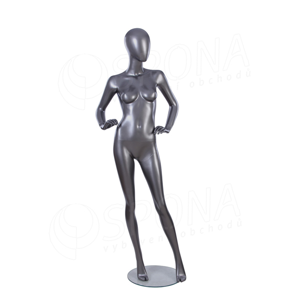 Stojící dámská figurína v abstraktním provedení vyniká svou jedinečnou tmavě stříbrnou barvou, které originalitu dodává také matná povrchová úprava. Všechny tyto atributy tvoří z této figuríny světový módní hit.